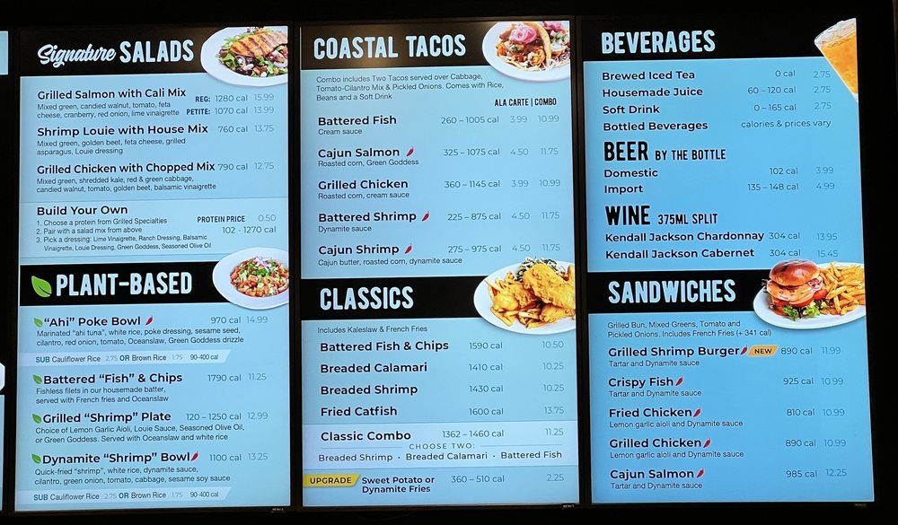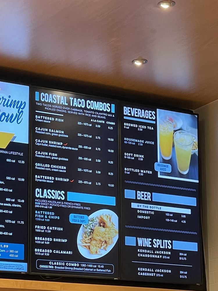 - Coastal Tacos: Indulge in options like the Battered Fish Taco and Cajun Shrimp Taco, perfect for a quick yet satisfying bite.